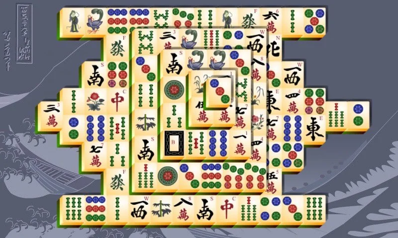 Classic Mahjongg Titans game with the exploding vulcano. Combine two of the same free tiles to remove the tiles.